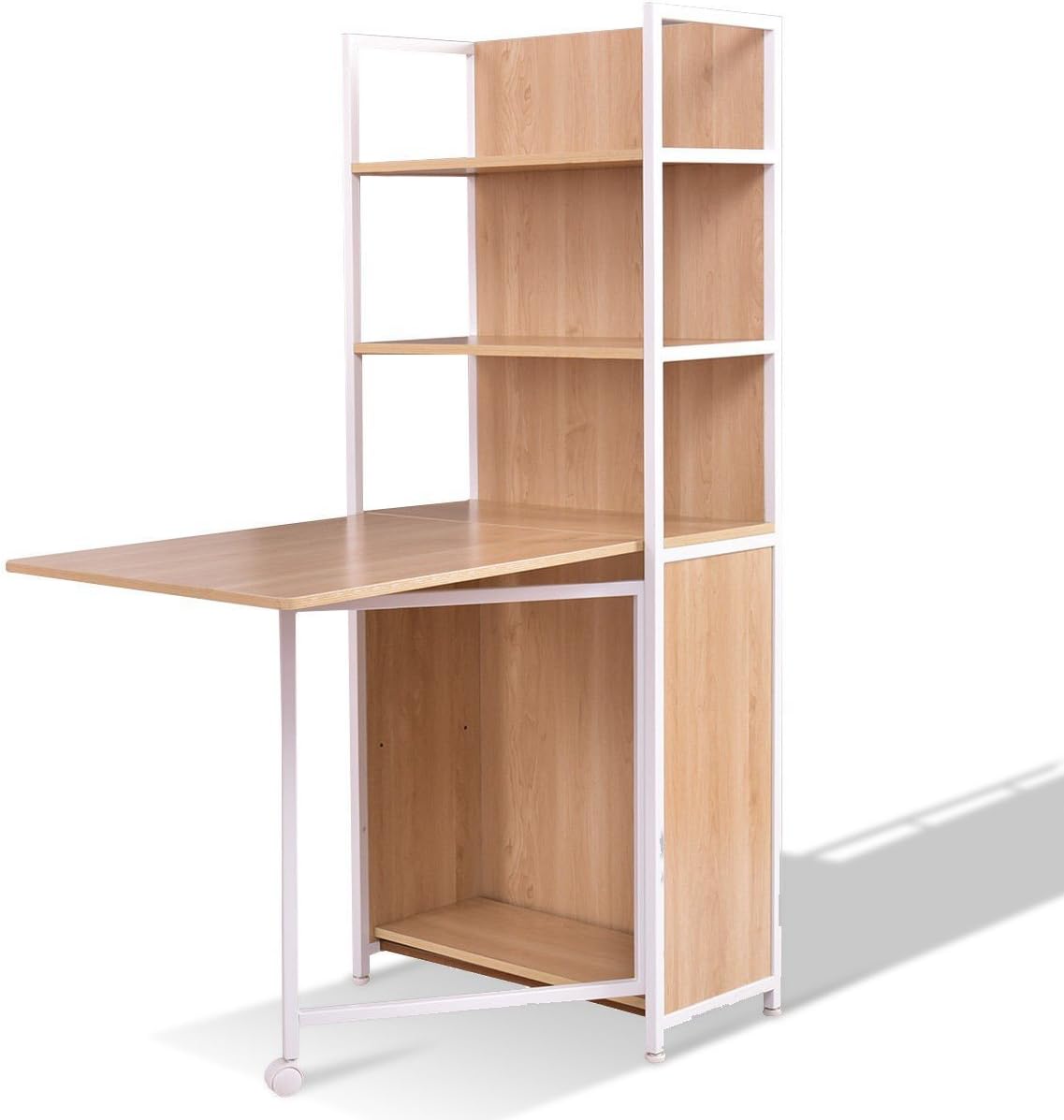 Apontus 2 In 1 Folding Fold Out Convertible Desk With Cabinet Bookshelf Amazon Co Uk Kitchen Home