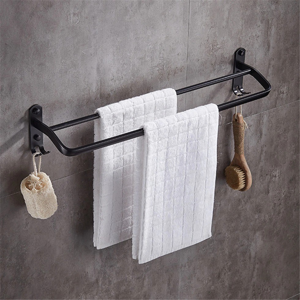 50cm Black Double Bar Towel Rack Wall Mount Space Aluminum Towel Bars With Hook Bath Shower Shopee Indonesia