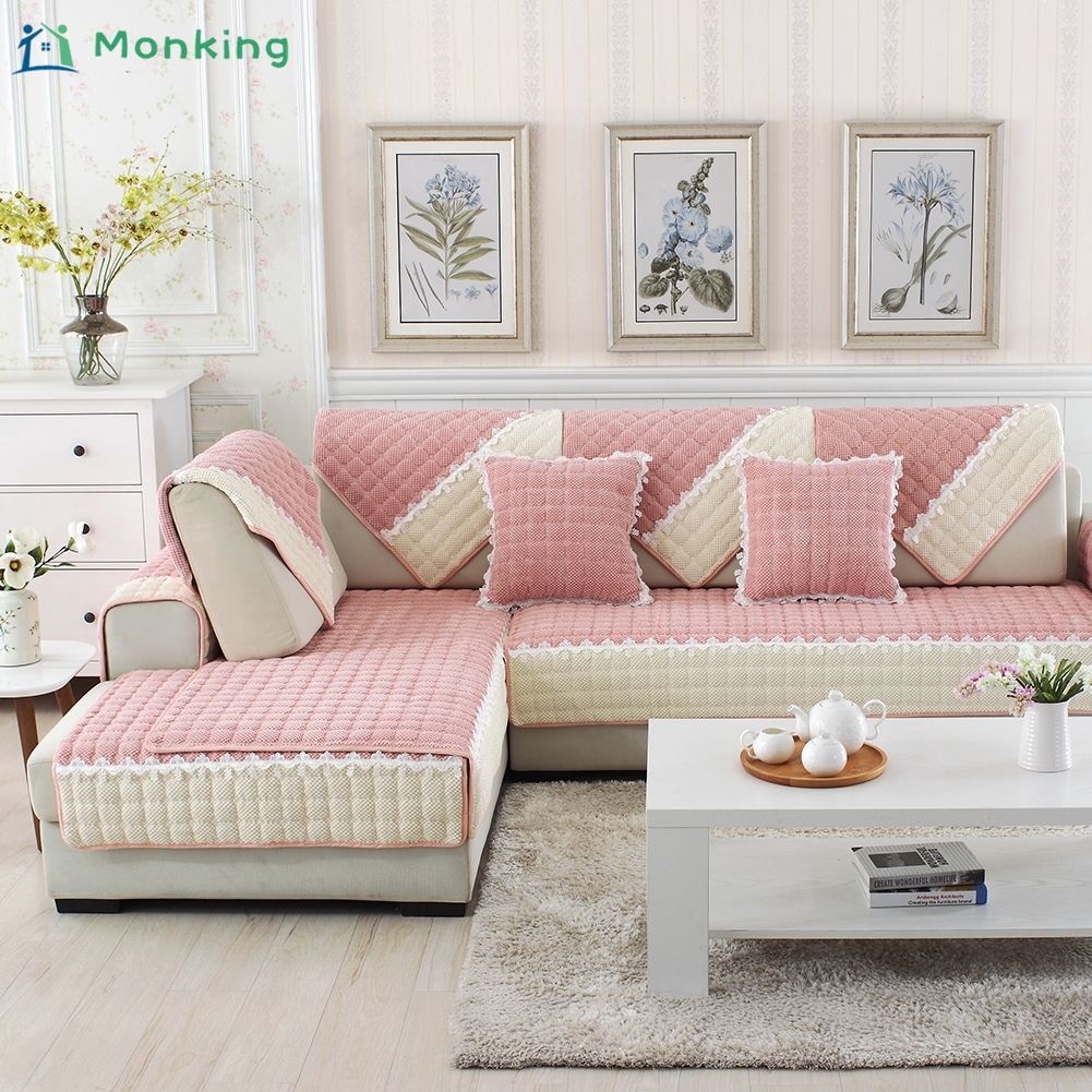 Plush Simple Sofa Cushion Pink Plaid Plush Sofa Cover Sofa Sectional Monking Shopee Indonesia