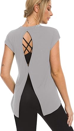 Amazon Com Bamans Women S Open Back Loose Fit Workout Tops Backless Short Sleeve Yoga Shirts Gym Exercise Crop Tank Tops Clothing