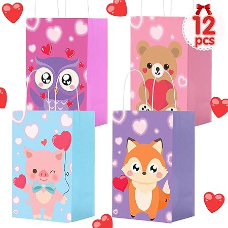 Amazon Com Miss Fantasy Valentine Gift Bags For Kids 12 Pack Valentines Goodie Party Bags Valentine Bags For Kids Toddlers Valentine Day Gift Bags Bulk Valentine Bags With Handles For Valentine Party Supplies