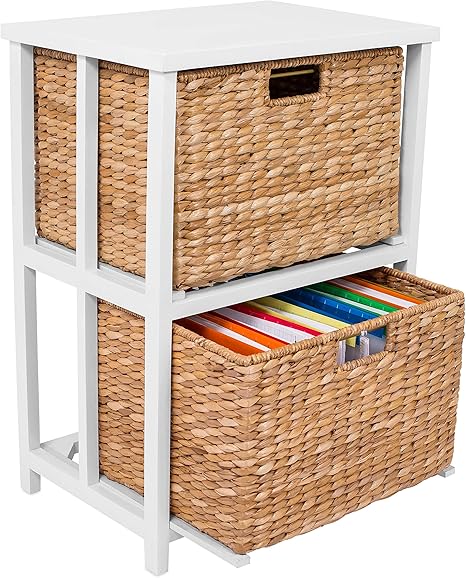 Amazon Com Birdrock Home Seagrass 2 Tier File Cubby Cabinet Vertical Storage Furniture Office Decor Home Decorative Box Filing Natural Wood Delivered Fully Assembled Hanging Letter And Legal Kitchen Dining