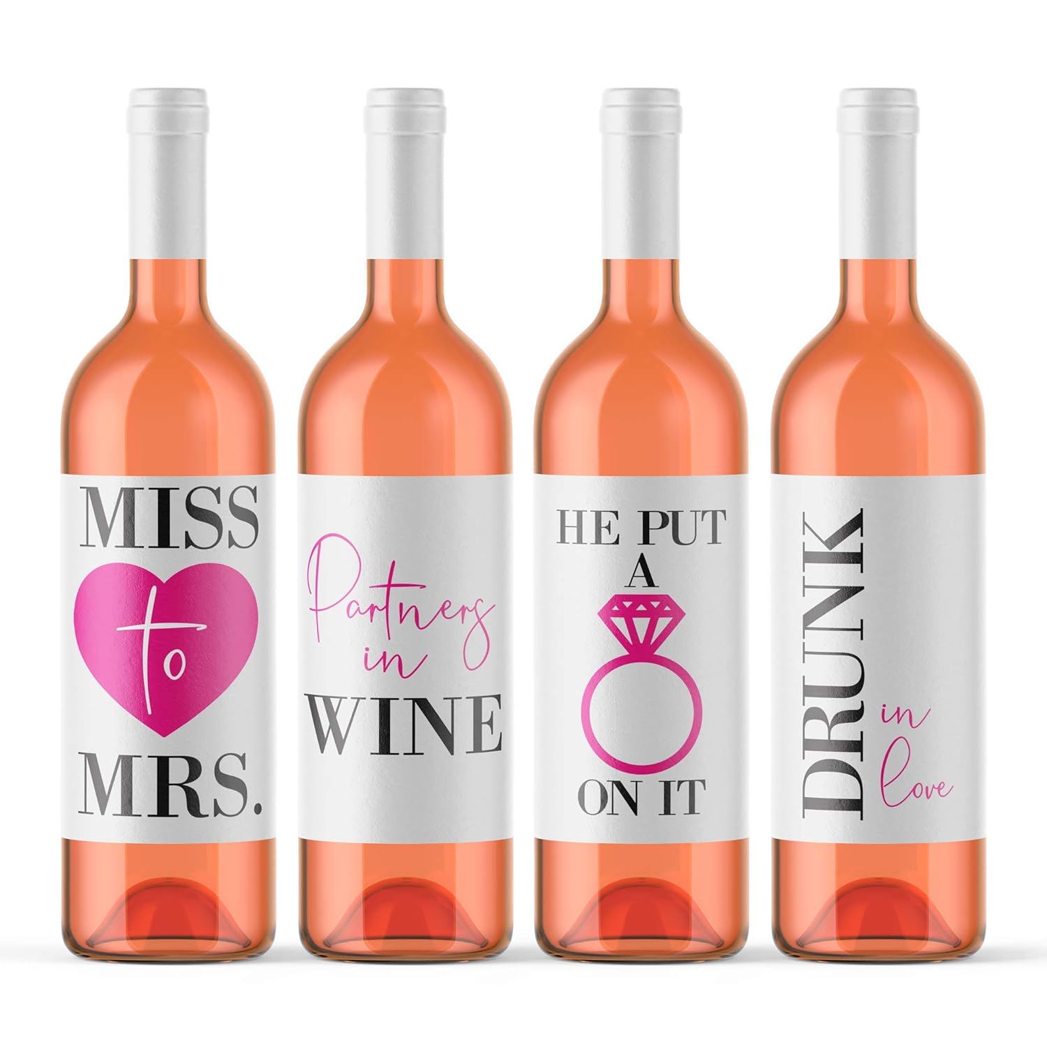 Amazon Com Bachelorette Party Wine Bottle Labels Pack Of 4 Funny Wine Labels Miss To Mrs He Put A Ring On It Drunk In Love Bridal Shower Gift Favor Stickers Wine Bottle Labels