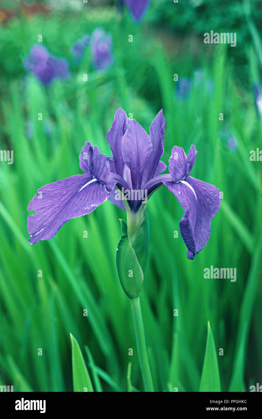 Iris Laevigata Japanese Iris Purple Flower On Long Stem With Green Leaves Stock Photo Alamy