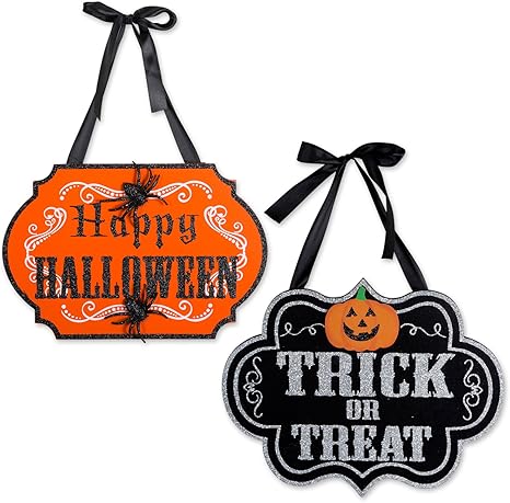 Amazon Com Dii Happy Hllwn Set 2 Indoor Outdoor Wood Fall Halloween Hanging Door Wall Signs Haunted House Home School Office Party Decorations Trick Or Treat S 2 2 Count Home Kitchen
