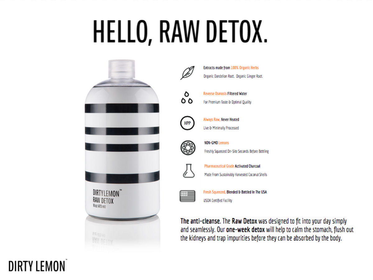 Dirty lemon detox water. Dirty Lemon is an activated charcoal detox. Even though lemon water seems harmless you should think. In reality Dirty Lemon is really just overpriced bottled lemon water six bottles is 45 which you can easily make on your own at home.