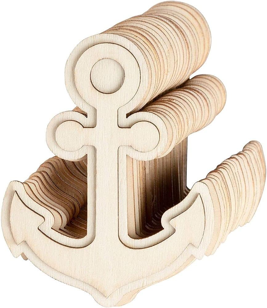 Amazon Com Wooden Cutouts For Crafts Wood Anchors 3 7 X 3 5 In 24 Pack Kitchen Dining