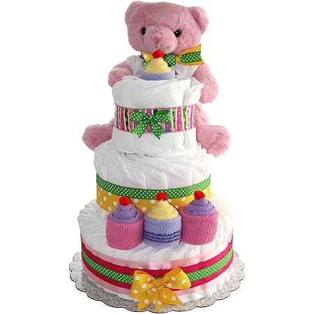 Amazon Com Baby Diaper Gift Pack 3 Tier Cake W 50 Diapers 2 Lush Socks 4 Washcloths And Teddy Bear Friend Unique Baby Shower Gifts That You Can Personalize Or