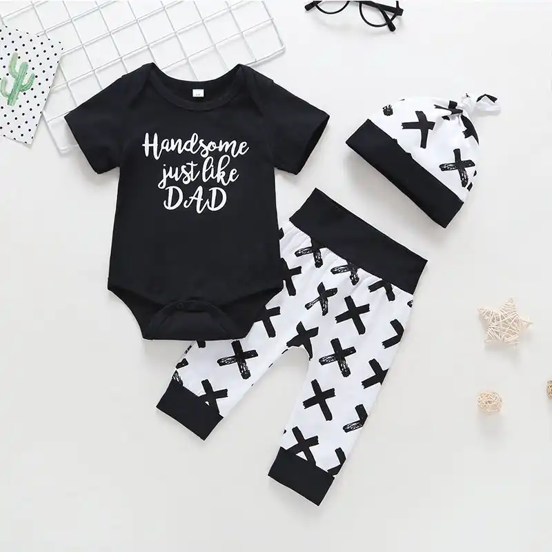 Newborn Baby Boy Clothes Outfit Set Handsome Just Like Daddy Print One Piece Romper Long Sleeve Bodysuit Pants Hat Overalls Baby Boys Outfits Clothing Sets