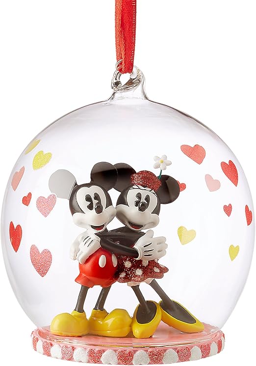 Amazon Com Disney Parks Christmas Ornament Minnie And Mickey Kissing Glass Globe Kitchen Dining