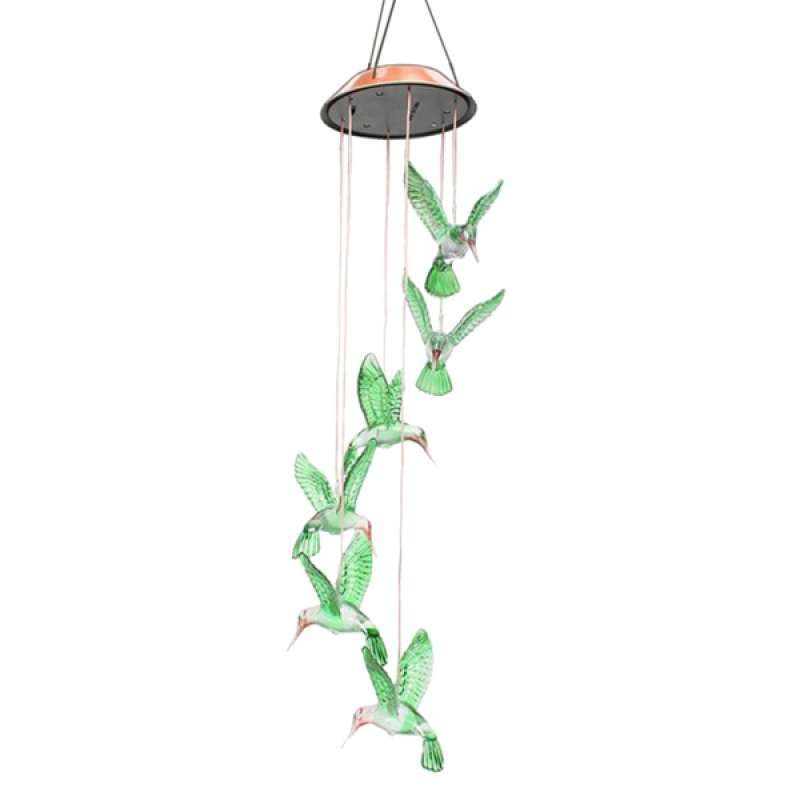 IMAGE Windlights Solar Powered LED Changing Light Color Hummingbird Wind Chimes for Gardening Lighting Decoration Home. Hummingbird Solar Wind Chimes Keep switch in ON positionthe LED solar wind chime will auto charge under direct sunshine. 41 out of 5 stars with 7 reviews.