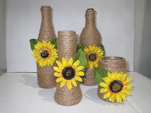 Amazon Com Jute Wrapped Wine Bottle Vases Sunflower Decorated Handmade