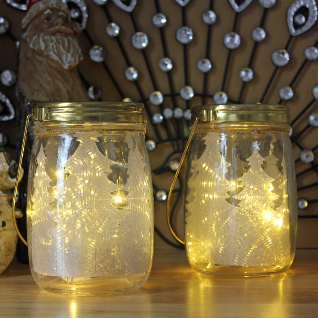 Set Of 2 Mason Jars Christmas Light Led Glass Light Decoration Lamp Lantern Mood Lighting Gold Metal Lid Gift Set Of 2 Mason Jars Amazon Co Uk Lighting