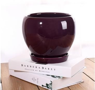 Amazon Com Ceramic Home Garden Modern Flower Planter Pot With Saucer Tray Classic Round Apple Ball Shape Purple Color Garden Outdoor