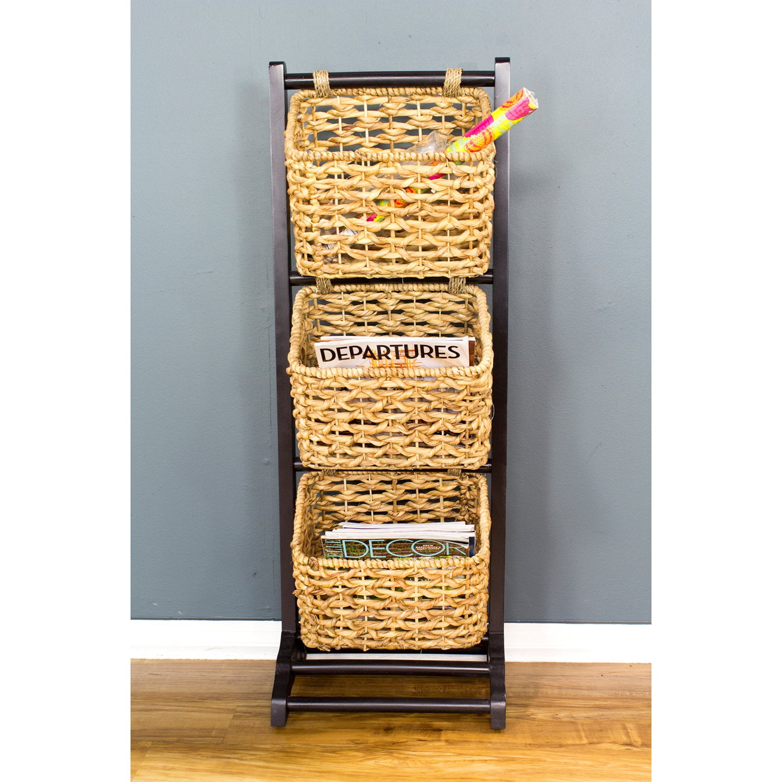 Heather Ann Creations W22330 Grey Vale 3 Tier Magazine Rack With 3 Hyacinth Storage Baskets 44 Grey Grey Washed Water Hyacinth 42 25 X 11 8 X 15 In Walmart Com Walmart Com
