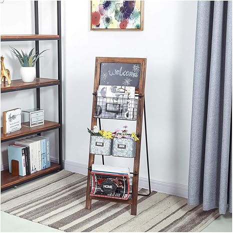 Glitzhome Magazine Rack 3 Tier Magazine Rack with 4 Baskets Floor Standing 40 H Farmhouse Plant Stand Storage Organizer Rack for Home and Office with Chalk Board Indoor Outdoor Decor. 3-Tier Magazine Rack With 3 Hyacinth Storage Baskets - Wood MDF Water Hyacinth. For maximum display space use a 2 tier top and 3 tier.