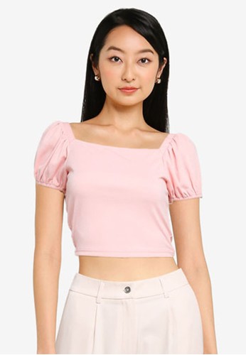 Jual Zalora Basics Puff Sleeves Rib Crop Top Original Zalora Indonesia