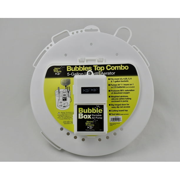 Bucket to keep bait alive longer. Universal 5 gallon lid with Bubble Box Aerator. Buy Marine Metal Products Bubbles Top Combo Aerator Lid LB-1 for 5 Gal.
