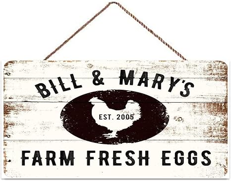 Amazon Com Rustic Farm Fresh Eggs Sign Vintage Personalized Farmhouse Signs Decor Chicken Coop Decorations Egg For Sale Hen House Rustic Accessories Tin Wall Art Home Decor Home Kitchen