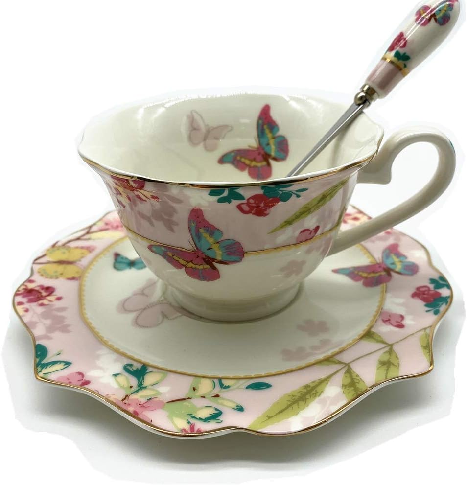 Amazon Com Krysclove Vintage Ceramic Teacup Elegant Coffee Cup With Spoon And Saucer Set Fine Royal Bone China Tea Cups Pink Cup Saucer Sets