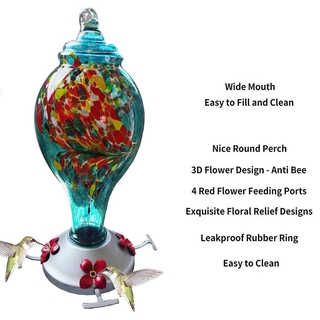 The bird feeder glass make sure the birds can feed from the rim or hop inside during bad weather. Colorful Glass bird Feeder for Outdoor22 Ounces Nectar CapacityHand Blown Glass Bird FeederRed Bottle WildBird Feeder 268 - birdfeeder NathanLavigne 35 out of 5 stars 14 3621 FREE shipping Add to Favorites Outdoor Hummingbird Feeder Blown Glass Bird Feeder 30 Ounces Blue Hummingbird Feeder Basket Hanger for Yard Art 164-humfeed. Round Glass Bird Feeder.